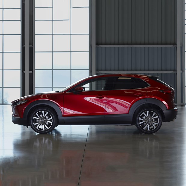 Mazda CX-30 thiết kế nóc xe cao, mở rộng kích thước khoang cửa sổ, mang lại tầm nhìn rộng và tư thế ngồi thoải mái cho người ngồi phía sau. Phần cột D kéo dài về phía sau, mang lại cảm giác thể thao như một mẫu xe coupe đồng thời gia tăng sự rộng rãi của khoang hành lý.
