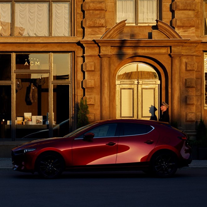 Với thiết kế KODO thế hệ mới, các đường gân trên hông xe đã biến mất hoàn toàn, thay vào đó là bề mặt được đánh lõm có chủ ý để phát huy tối đa yếu tố ánh sáng giúp tạo nên cảm giác chuyển động của thân xe.
