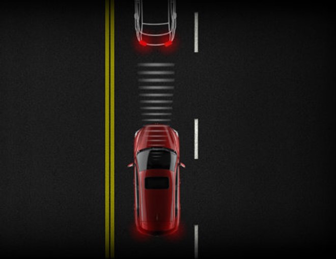 Bằng cách quét các điểm mù phía sau xe trong phạm vi lên đến 50m bằng gương chiếu hậu, radar sẽ phát hiện các phương tiện nằm ở vị trí khuất để đưa ra cảnh báo về khả năng các phương tiện thay đổi làn đường gây nguy hiểm.